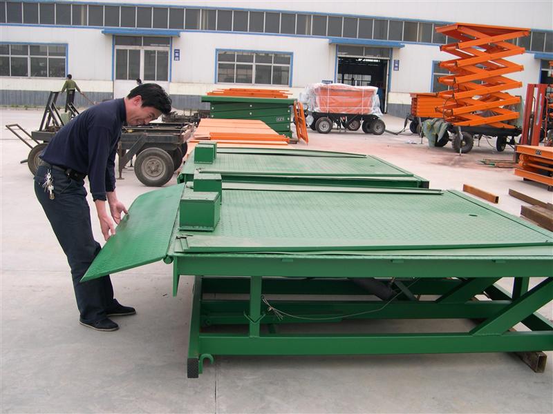 固定式液壓登車橋是實(shí)現(xiàn)貨物快速裝卸的專用輔助設(shè)備,它的高度調(diào)節(jié)功能使貨車與庫房的貨臺(tái)之間架起一座橋梁,叉車等搬運(yùn)車輛通過它能直接駛?cè)胴涇噧?nèi)部進(jìn)行貨物的批量裝卸,單人作業(yè)可實(shí)現(xiàn)貨物的快速裝卸。使企業(yè)減少大量勞力,提高工作效率,獲取更大經(jīng)濟(jì)效益。